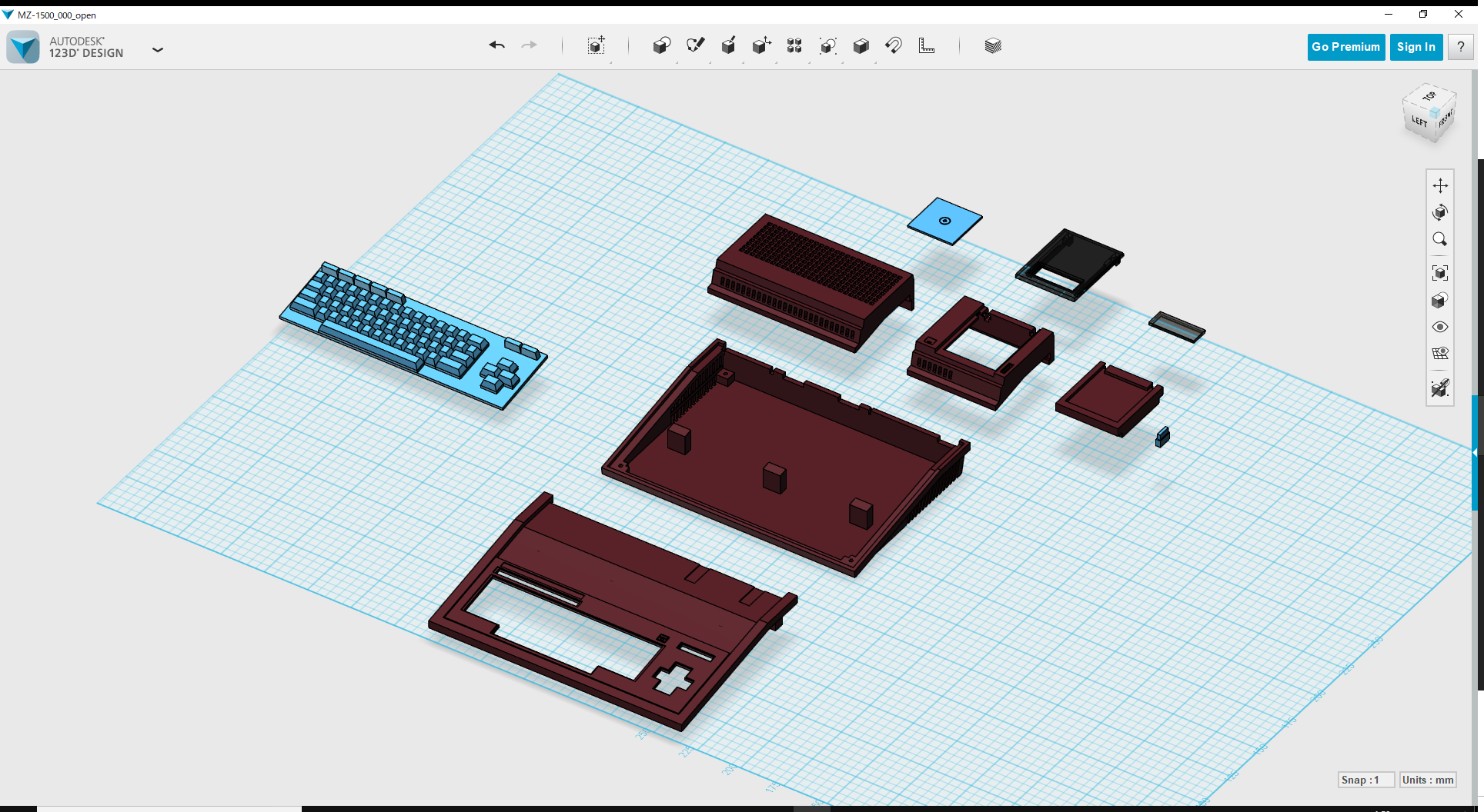 1/3スケールのSHARP MZ-1500風小物のstlファイルです。 スイッチ類、I/Oポート等は省略しています。